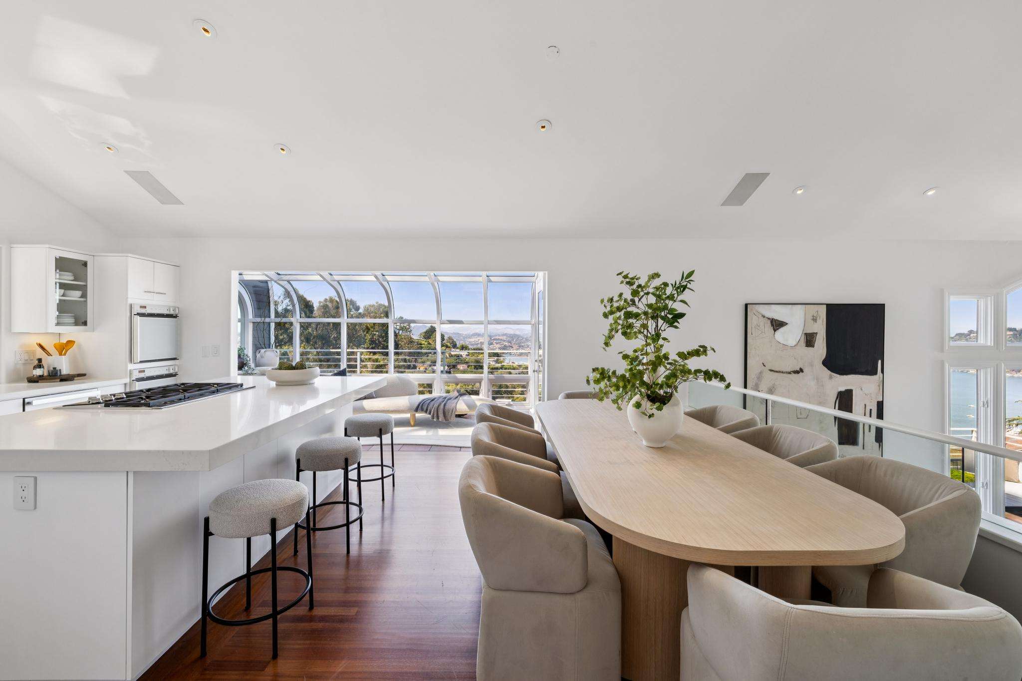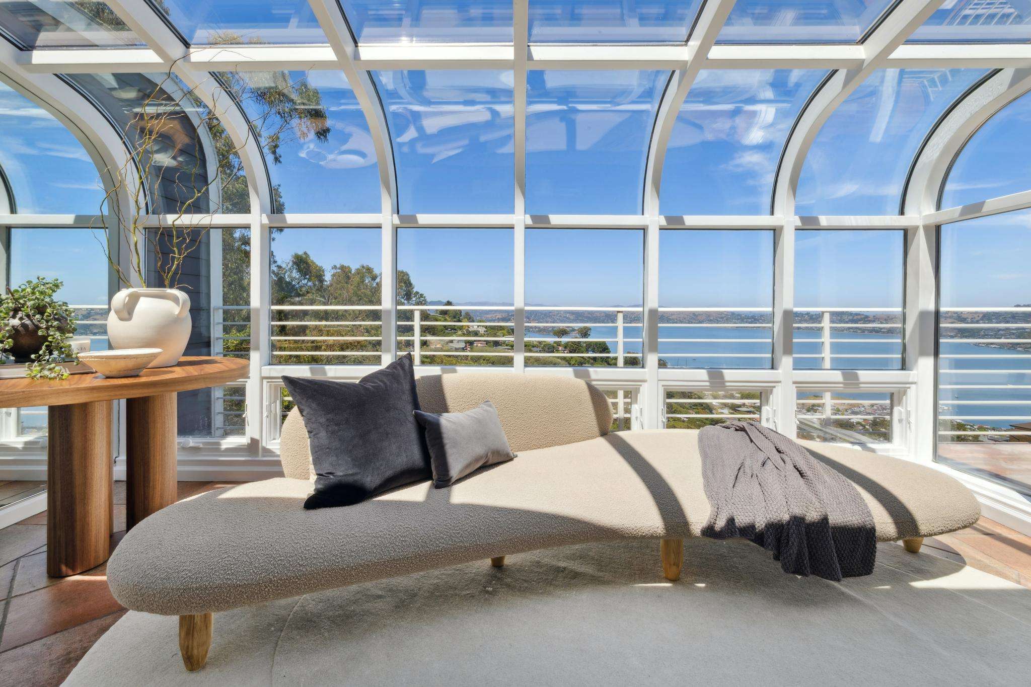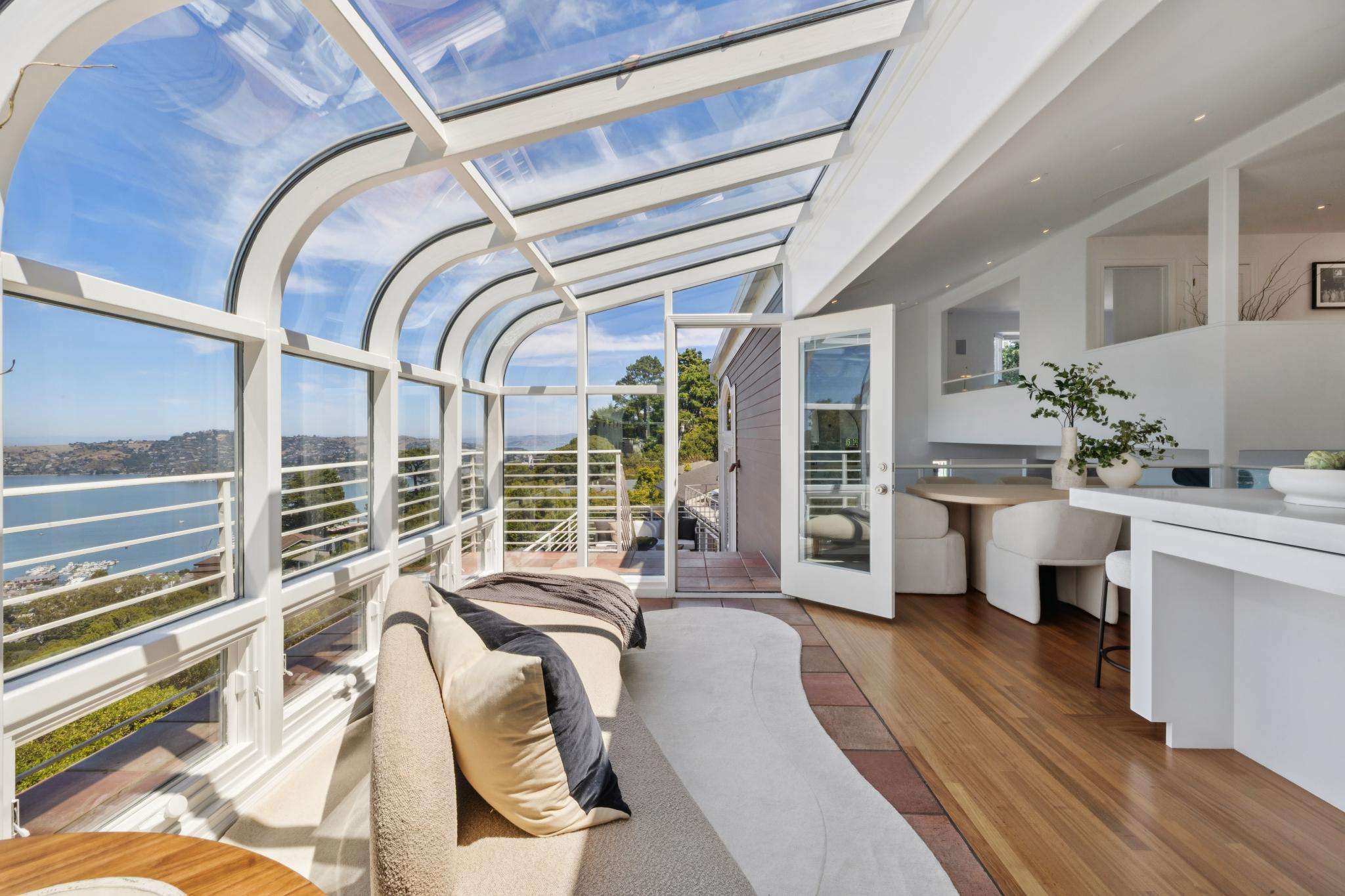Walls of glass blur the line between indoors and out, flooding every room with natural light. Double-height living spaces, a chef’s kitchen crafted for culinary artistry, and a luminous solarium set the stage for both lavish entertaining and quiet mornings where the horizon is your only companion. Outside, expansive terraces and a level lawn invite you to embrace Sausalito’s signature indoor-outdoor lifestyle.
