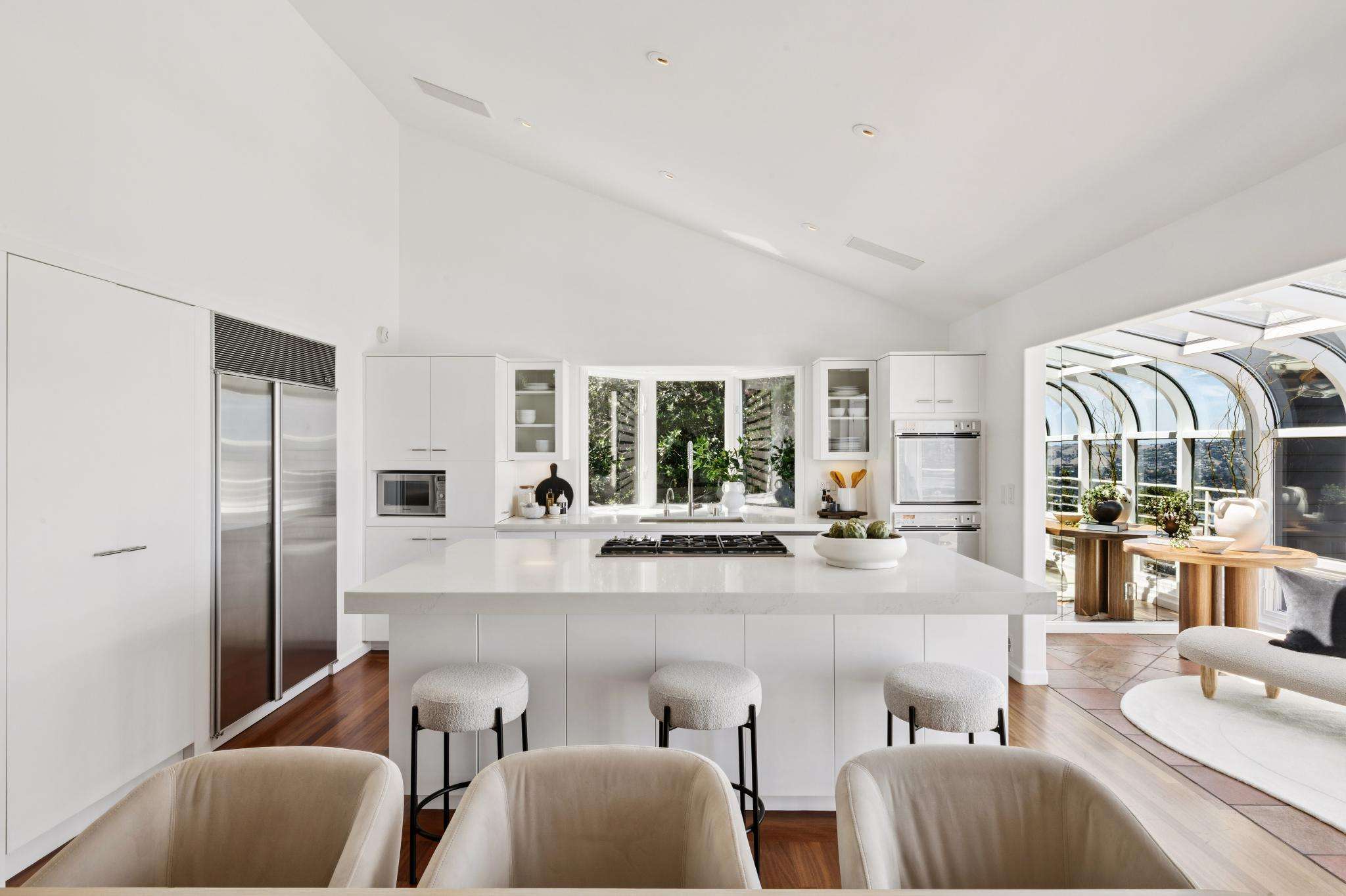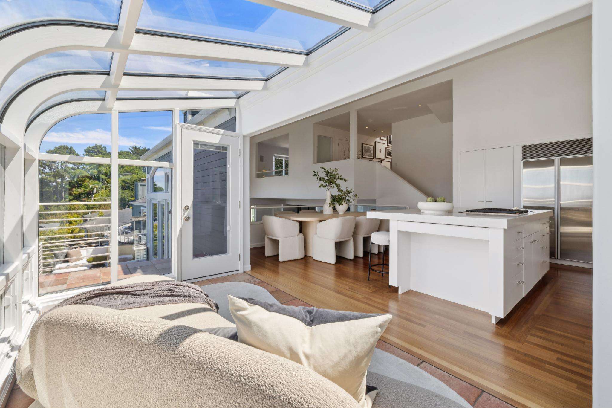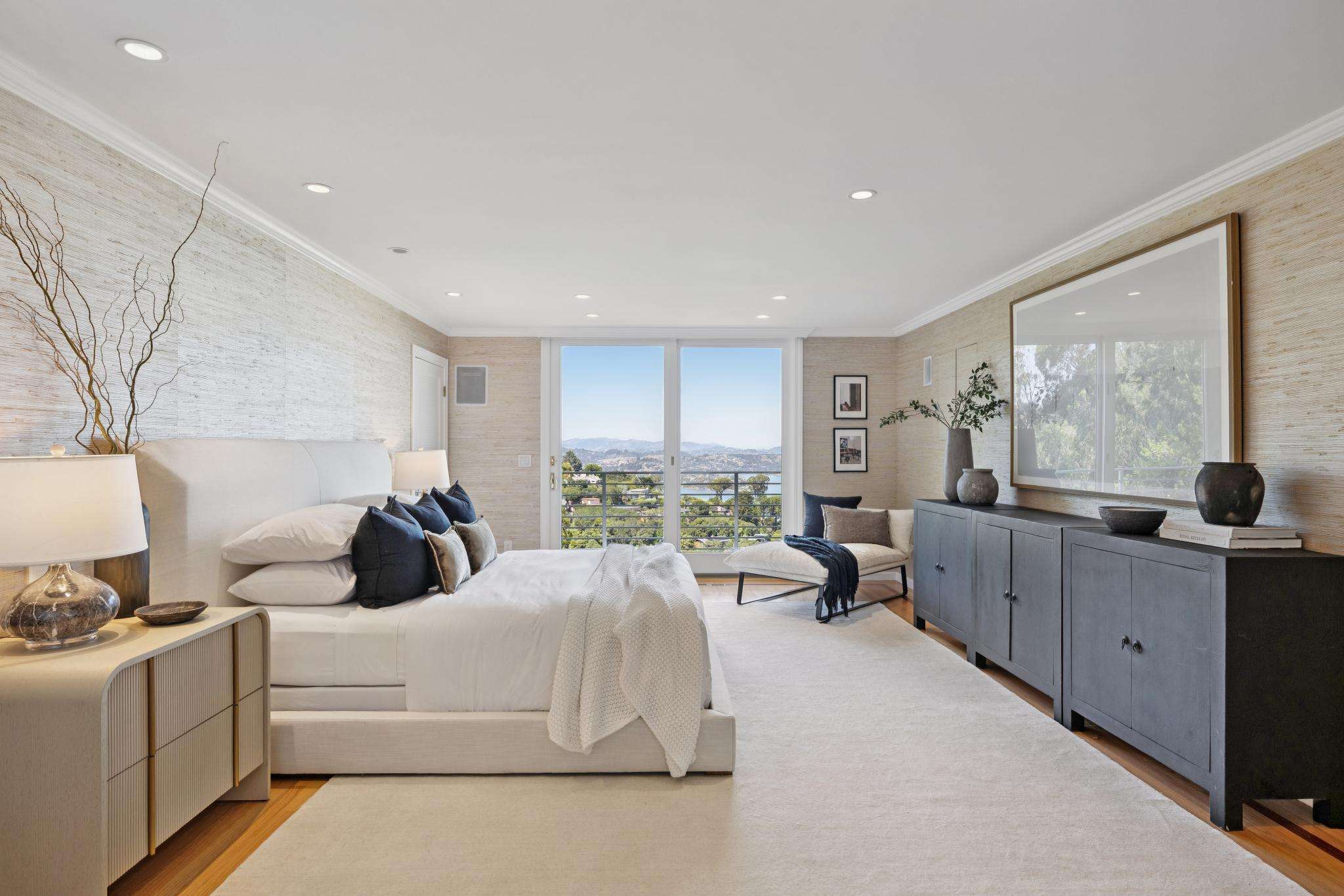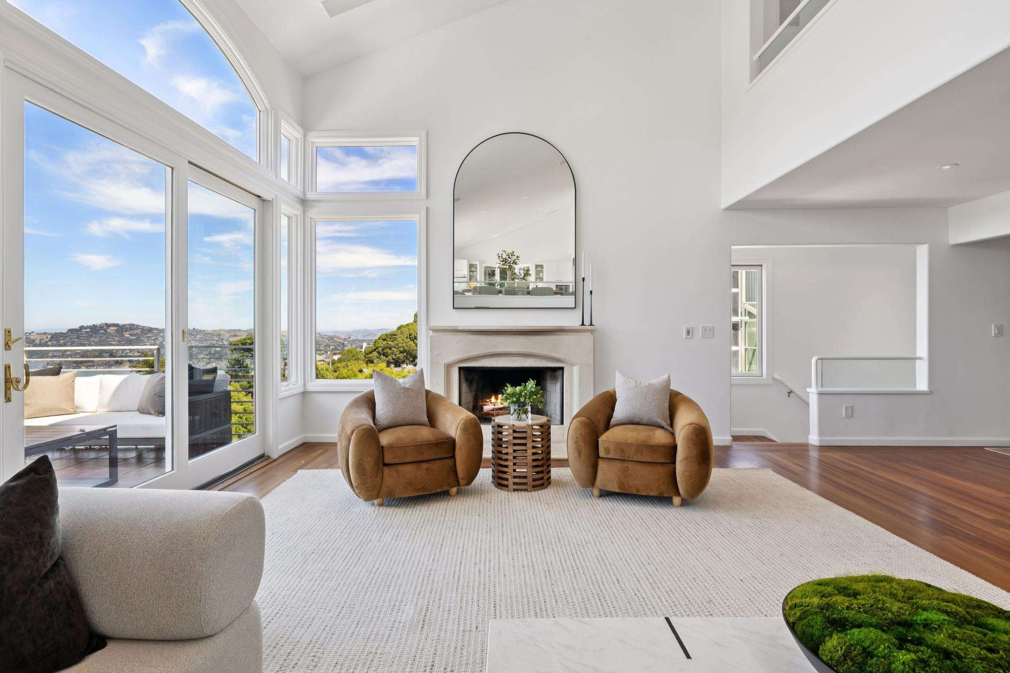 Walls of glass blur the line between indoors and out, flooding every room with natural light. Double-height living spaces, a chef’s kitchen crafted for culinary artistry, and a luminous solarium set the stage for both lavish entertaining and quiet mornings where the horizon is your only companion. Outside, expansive terraces and a level lawn invite you to embrace Sausalito’s signature indoor-outdoor lifestyle.