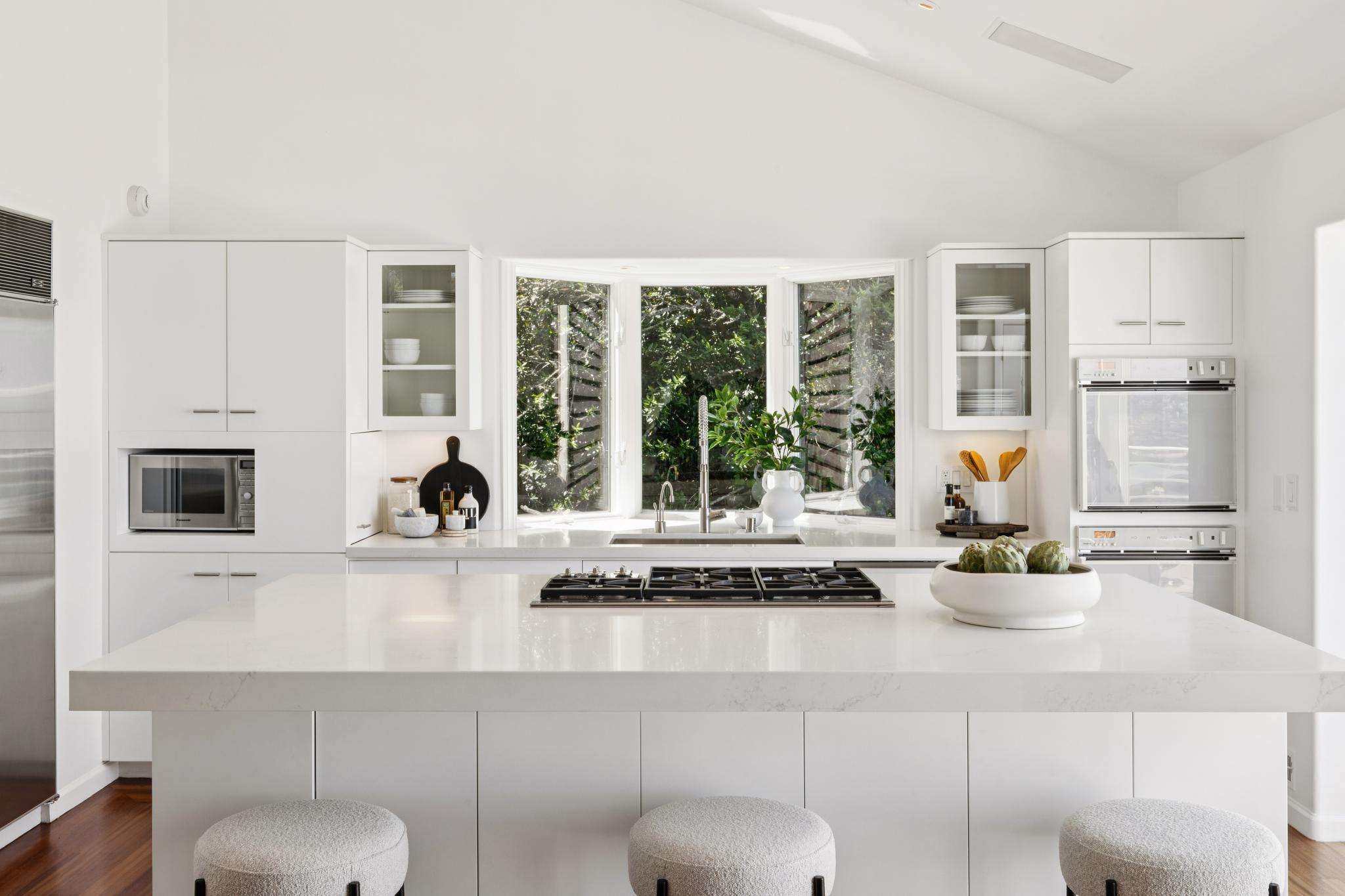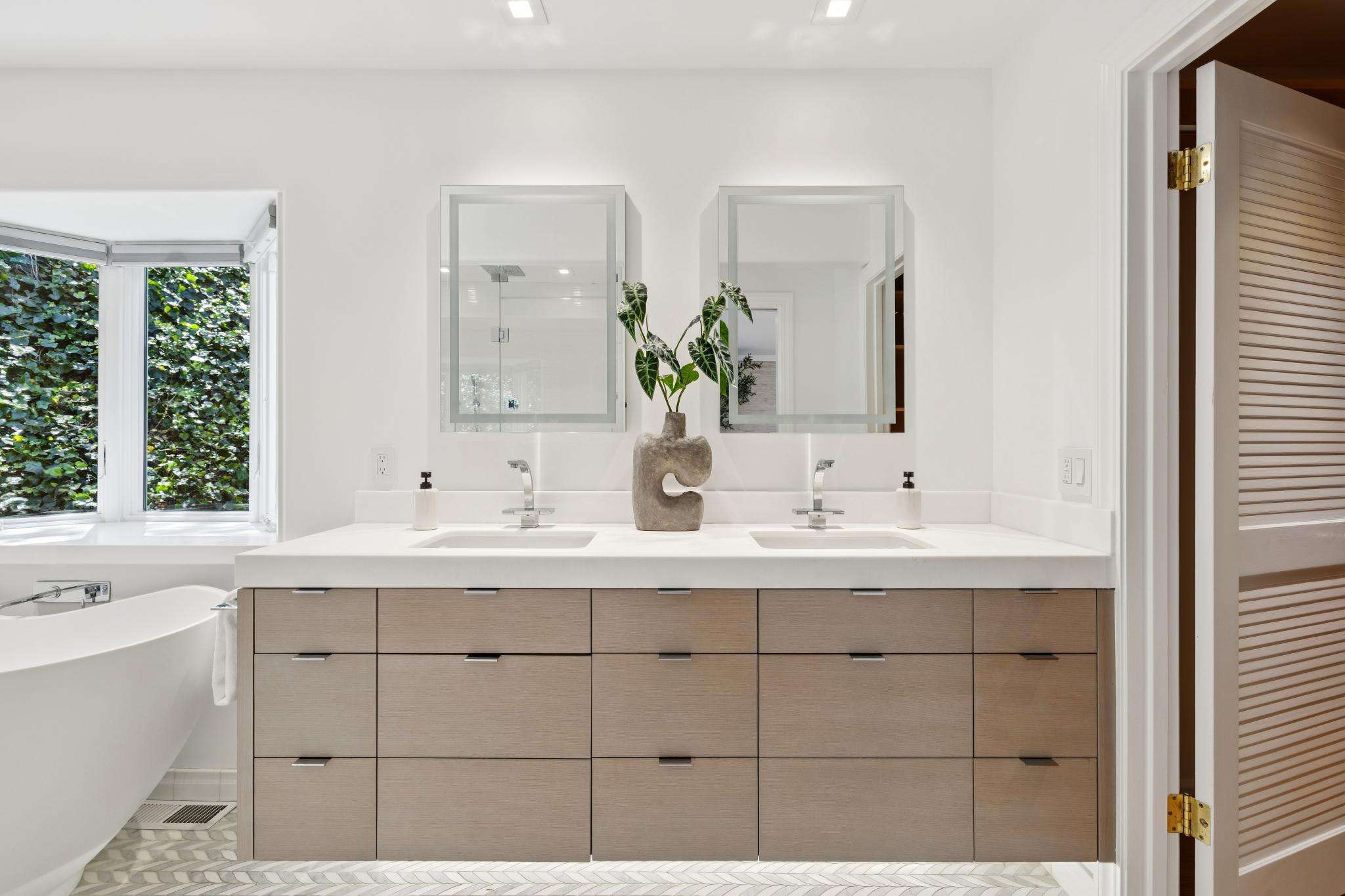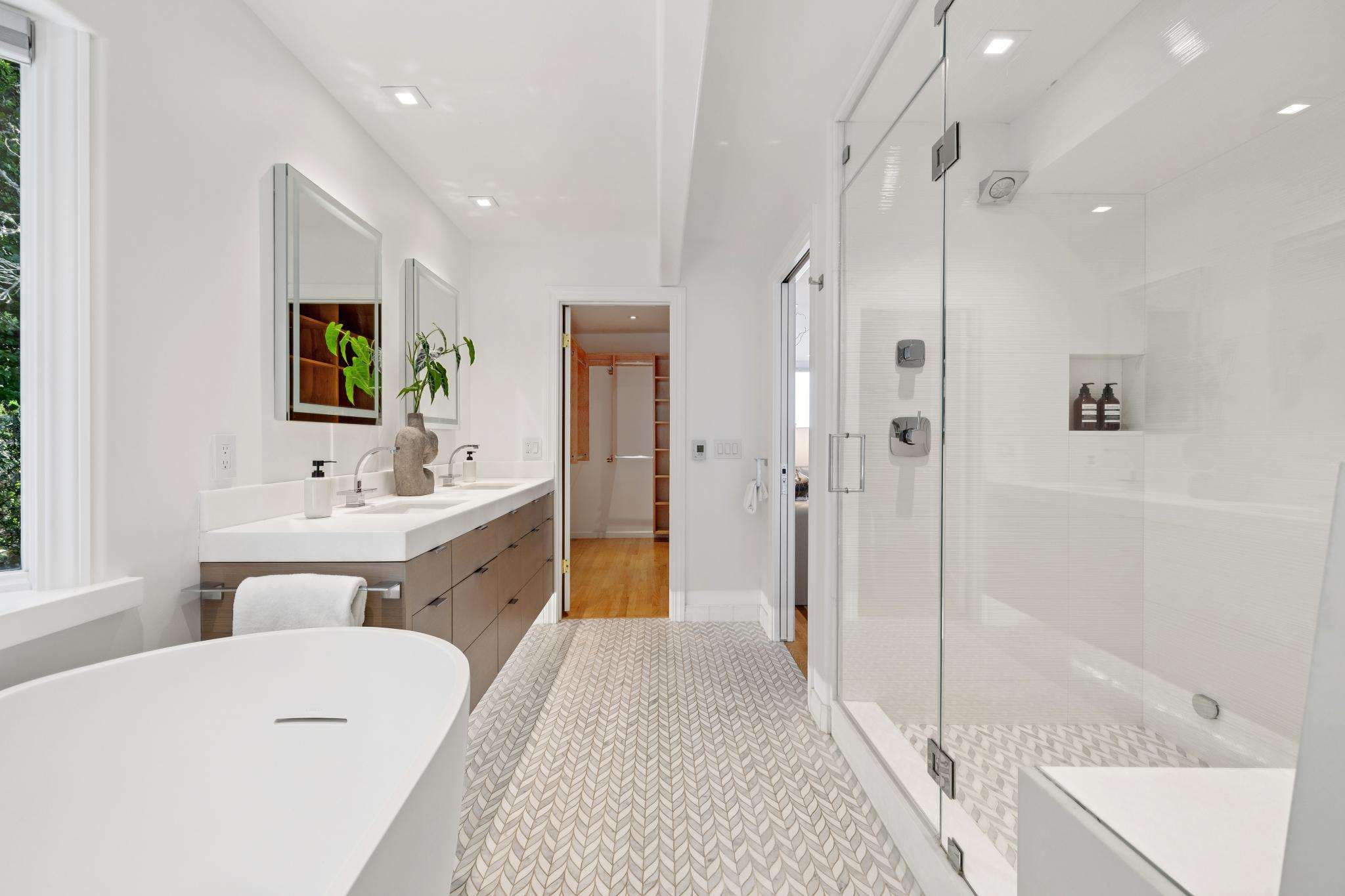 The primary suite is a retreat unto itself, with dual walk-in closets, a spa-inspired bath, and a private view deck. A separate guest/au pair suite is perfect haven for short or long term guests while three additional bedrooms provide the utmost in privacy and space. Two expansive family rooms provide flexible spaces ideal for work, wellness, or play.